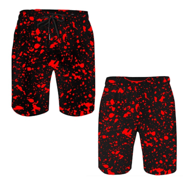 * Shorts: There are black shorts with red graphic accents, and blue shorts with white graphic accents, both designed to coordinate with the shirts.