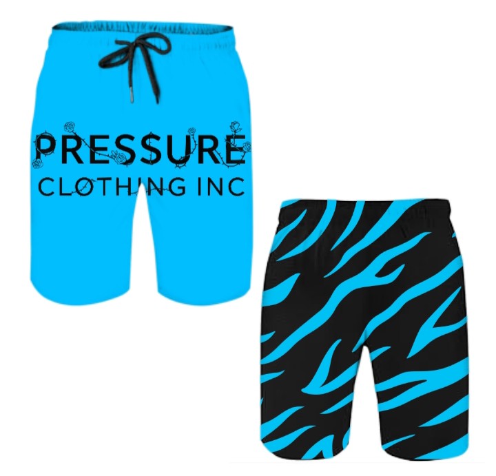 Make a statement in these eye-catching, bright blue shorts. Crafted for comfort and style, they feature a relaxed fit and an adjustable drawstring waist for a personalized feel. The front of the left leg is emblazoned with "PRESSURE CLOTHING INC" in a striking black font, adding an urban edge. Whether you're hitting the streets or lounging by the pool, these shorts are sure to turn heads.