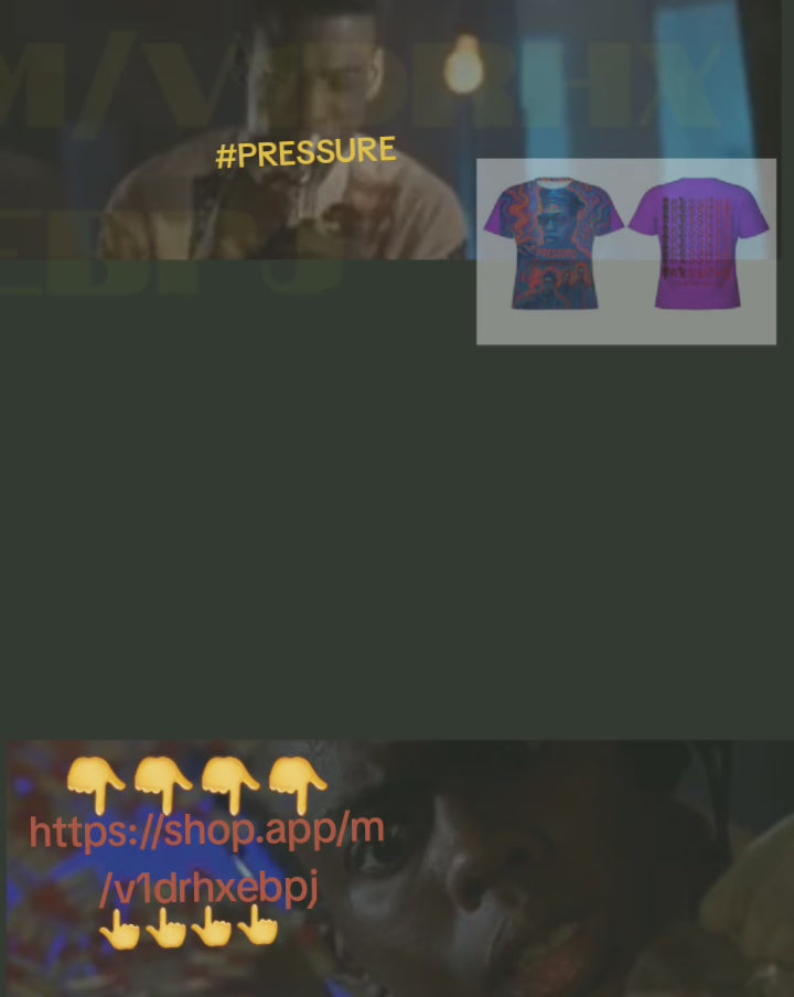 Turning to the back, the shirt has a repeating vertical design of the word "PRESSURE" stacked multiple times in a gradient of red hues, interspersed with what looks like stylized roses. Right at the bottom, you'll find "PRESSURE CLOTHING INC." again. It's definitely a statement piece that will turn heads!